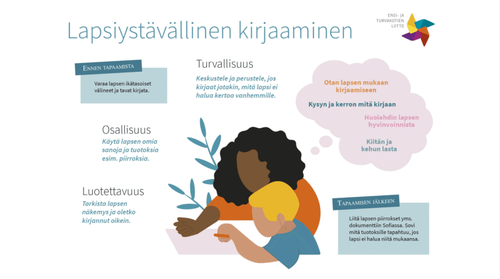 Lapsiystävällisen kirjaamisen ohjekortti on tarkoitettu lasten ja nuorten kanssa tehtävän työskentelyn tueksi.