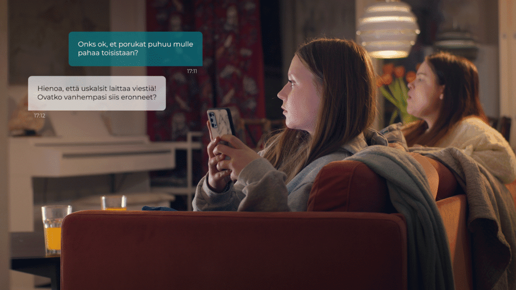 Videosisällön kuvaus: <p>"Onksok, että vanhemmat puhuu mulle pahaa toisistaan? Haluaisin olla mun molempien vanhempien kanssa."</p> <p>Tule juttelemaan chattiin vanhempien erosta. Älä jää yksin, tule chattiin jo tänään. </p>
