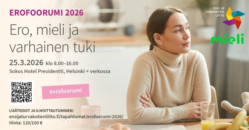 Ensi- ja turvakotien liiton valtakunnallinen erofoorumi järjestetään taas maaliskuussa 2026. Tänä vuonna tapahtuma tehdään yhteistyössä MIELI ry:n kanssa.